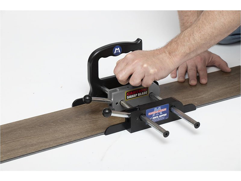Marshalltown Vinylschneider: Präzise Schnitte bis 241 mm Breite, einstellbare Klingentiefe für Materialien bis 8 mm Dicke, geräusch- und staubarm.