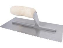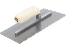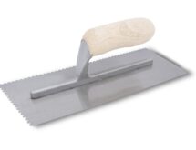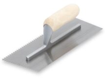 Marshalltown QLT Gezahnte und einseitig gekürzte Kelle, U-3×2,5×3 mm, Holzgriff, Stahl, Maße: 279×114 mm