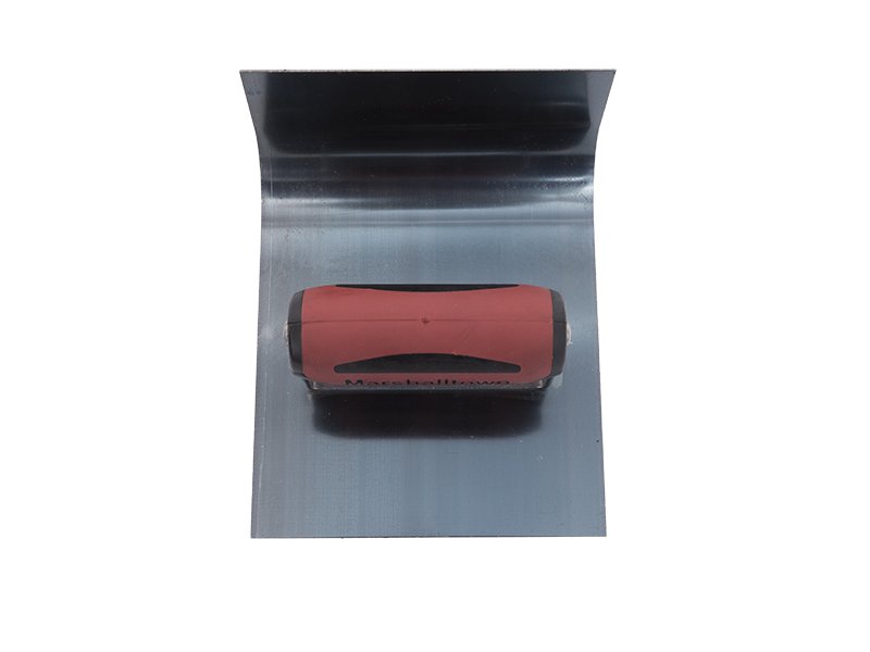 Marshalltown abgewinkelte Inneneck-Kelle aus robustem Blaustahl mit langer Blattlänge für präzise Kanten. Durasoft Griff mindert Ermüdung. Radius: 25mm, Winkel: 90 Grad. Maße: 152x102x76 mm.