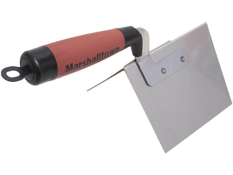 Die Ausseneck-Kelle von Marshalltown ist hergestellt aus einem Blatt robusten Edelstahls, das einen eckigen Winkel von 80 Grad hat, sich aber bis 90 Grad biegen lässt. Die stabile Stahlbefestigung ist am belastbaren Durasoft-Griff montiert. Die Eckkelle ist zur Bildung von Außenecken gedacht, sie ist haltbar und einfach zu reinigen. Wird vor allem von Trockenbauern zum Einbetten des Netzbandes und zum Glätten der letzten Materialschicht auf die abgeklebte Ecke verwendet. Der patentierte Durasoft-Griff mindert Ermüdungserscheinungen, die bei längerem Arbeiten auftreten. Am Griff ist eine Aufhänge-Öse zur leichteren Aufbewahrung.