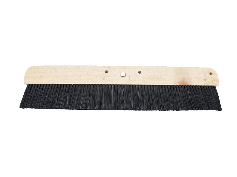 Lange schwarze Borsten aus Polypropylen, die fest in einen natürlich lackierten Hartholzblock eingefasst sind. Gewindeloch passt auf jeden Standardbesenstiel. ideal zum Auftragen von rutschfestem Finish auf frisch verlegten Betonoberflächen.