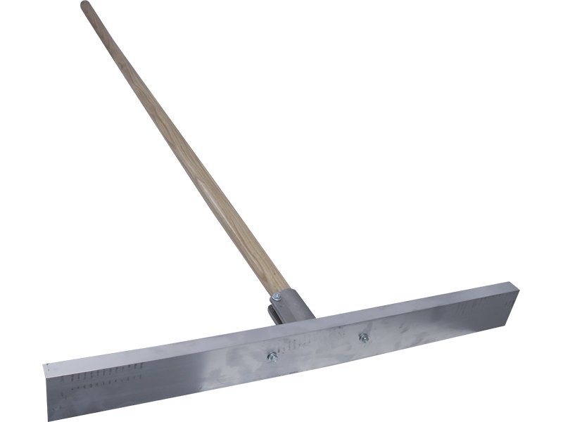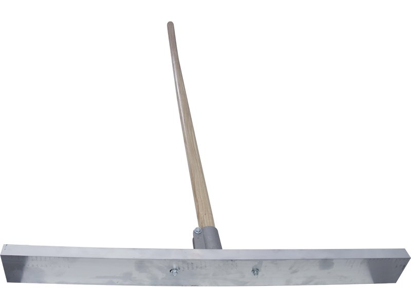 Hochwertiger Betonverteiler aus langlebigem Magnesium für Glätten und Nivellieren von frischem Asphalt. L-Form für präzise Kontrolle. Maße: 762×76 mm, 2134 mm Holzstiel.