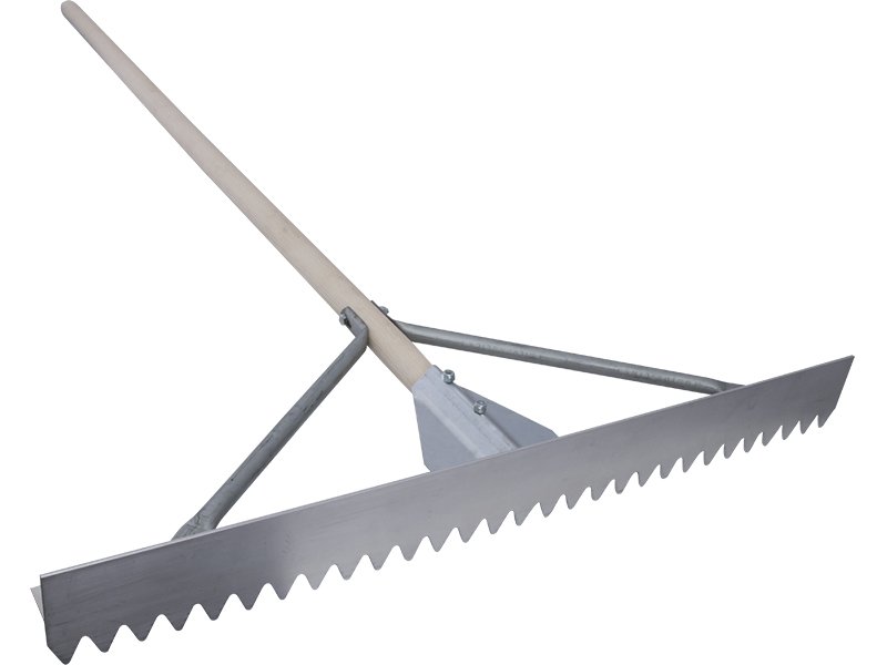 Der Betonverteiler von Marshalltown ist hergestellt aus langlebigem Magnesium. Das leichte Blatt hat scharfe Zähne, die dafür sorgen, dass das Material ungehindert passieren kann und zum leichteren bearbeiten der Oberfläche. Der Betonverteiler hat zusätzliche Verstärkungsstangen, die mit dem Blatt und dem Stiel verbunden sind, für zusätzliche Stabilität. Der Holzstiel hat einen Durchmesser von 35mm und eine Länge von 1524 mm.