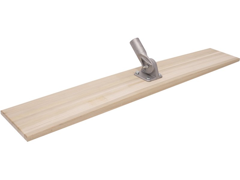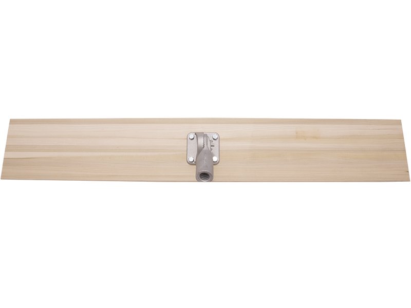 Der Bodenglätter von Marshalltown ist hergestellt aus laminierter Pappel. Er ist konisch, damit man in der Bearbeitung flexibler ist, in der Mitte ist das Blatt 32 mm dick, an den Enden 18 mm. Der Holz-Bodenglätter wird verwendet, um die Poren im gelegten Beton zu öffnen und überschüssiges Wasser an die Oberfläche zu ziehen. Mit dem Gewindekippgelenk, das schon montiert ist, kann man alle Gewindestiele verwenden.
