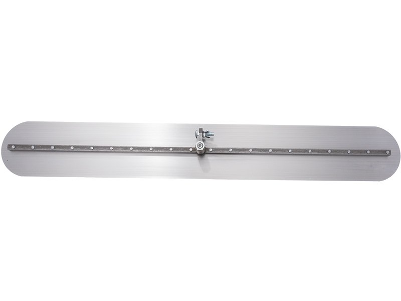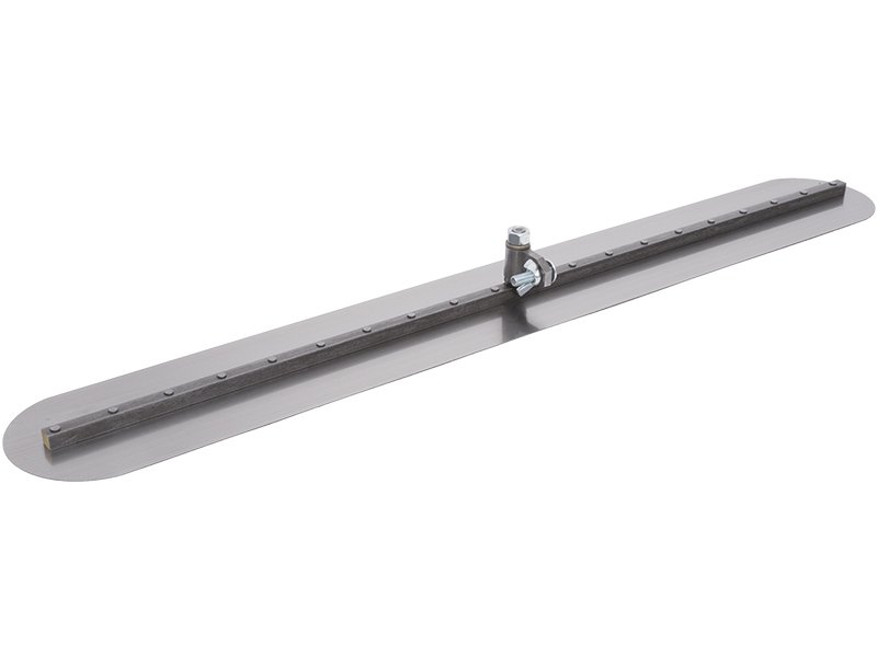 Marshalltown Bodenglätter aus Carbonstahl für nahtlose, glatte Betonoberflächen. Keine Rillen oder Furchen durch abgerundete Enden. Vollwinkel-Schwenkvorrichtung für Gabelkopf-Stiel. Maße: 610×127 mm.