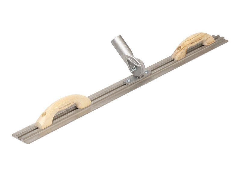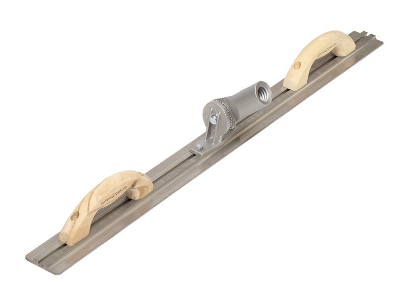 Marshalltown Bodenglätter „T-Kanal“, abgerundete Enden, 2 Holzgriffe & Gewinde-Kippgelenk, Magnesium, Maße: 1067×79 mm