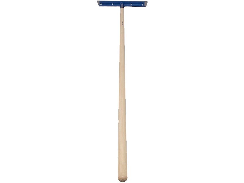 Blatt ist aus Federstahl. Metallzwinge verbindet Holzstiel