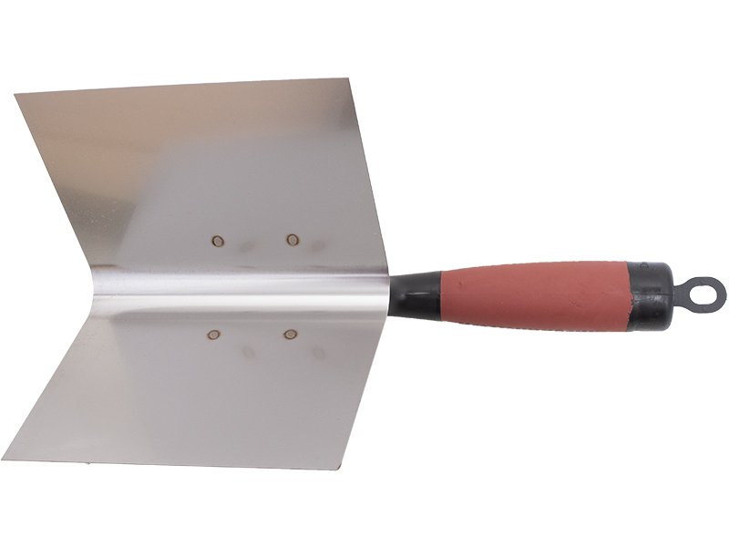 Die Ausseneck-Kelle von Marshalltown ist hergestellt aus einem Blatt robusten Edelstahls, das einen abgerundeten Winkel von 80 Grad hat, sich aber bis 90 Grad biegen lässt. Die stabile Stahlbefestigung ist am belastbaren Durasoft-Griff montiert. Die Eckkelle ist zur Bildung von Außenecken gedacht und ist haltbar und einfach zu reinigen. Wird vor allem von Trockenbauern zum Einbetten des Netzbandes und zum Glätten der letzten Materialschicht auf die abgeklebte Ecke verwendet. Der patentierte Durasoft-Griff mindert Ermüdungserscheinungen, die bei längerem Arbeiten auftreten. Am Griff ist eine Aufhänge-Öse zur leichteren Aufbewahrung.