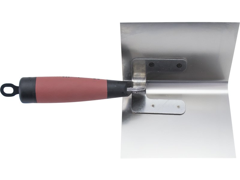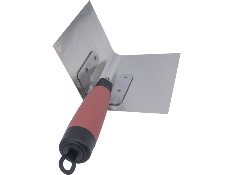 Die Inneneck-Kelle von Marshalltown ist aus einem Stück flexiblem Edelstahl hergestellt. Die Kelle hat einen 103 Grad Winkel, der sich biegt, um während der Benutzung eine perfekte 90-Grad-Ecke zu bilden. Die Eckkelle ist zur Bildung von Außenecken gedacht und ist haltbar und einfach zu reinigen. Wird vor allem von Trockenbauern und Verputzern zum Einbetten des Netzbandes und/oder zum Glätten der letzten Materialschicht auf die abgeklebte Ecke verwendet. Der patentierte Durasoft-Griff mindert Ermüdungserscheinungen, die bei längerem Arbeiten auftreten. Am Griff ist eine Aufhänge-Öse zur leichteren Aufbewahrung.