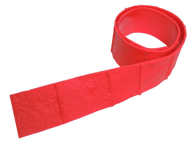 Robuste Stempelform aus langlebigem Kunststoff für müheloses Übertragen von Pflasterstufen. Länge ermöglicht gleichmäßige Fronten. Flexibel und rot.