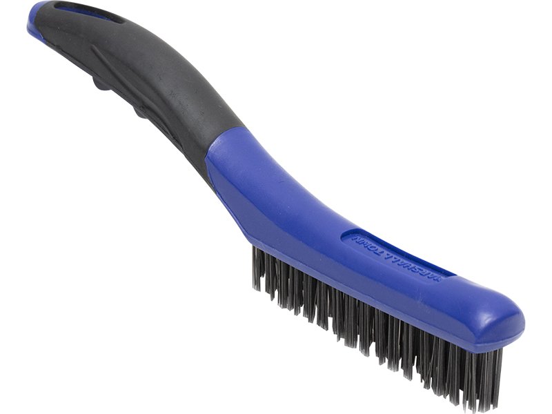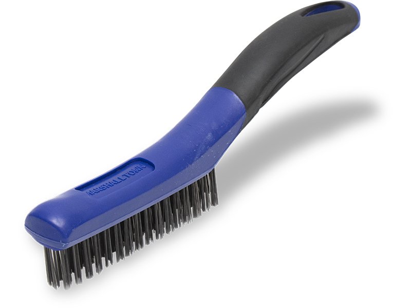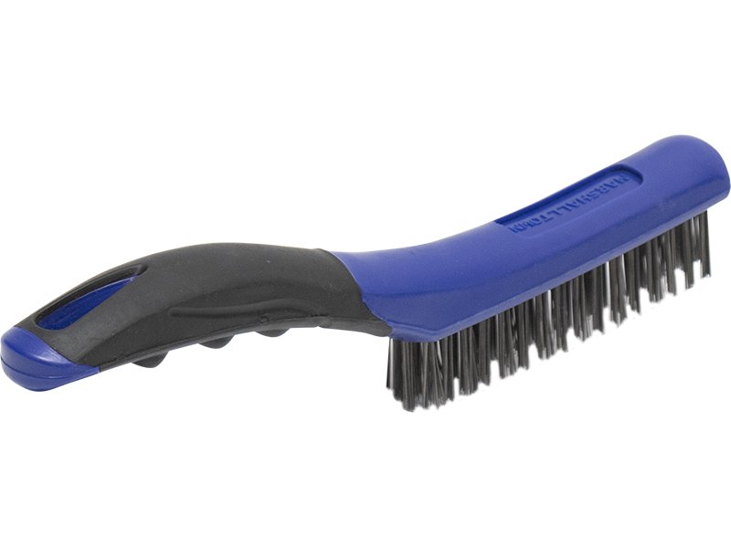 Marshalltown Drahtbürste mit Stahlborsten in 4×18 Reihen zum Entfernen von Farbe. Softgrip Griff und Fingermulde. Maße: 250×50 mm.