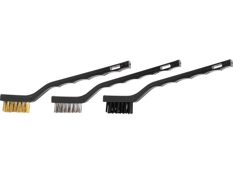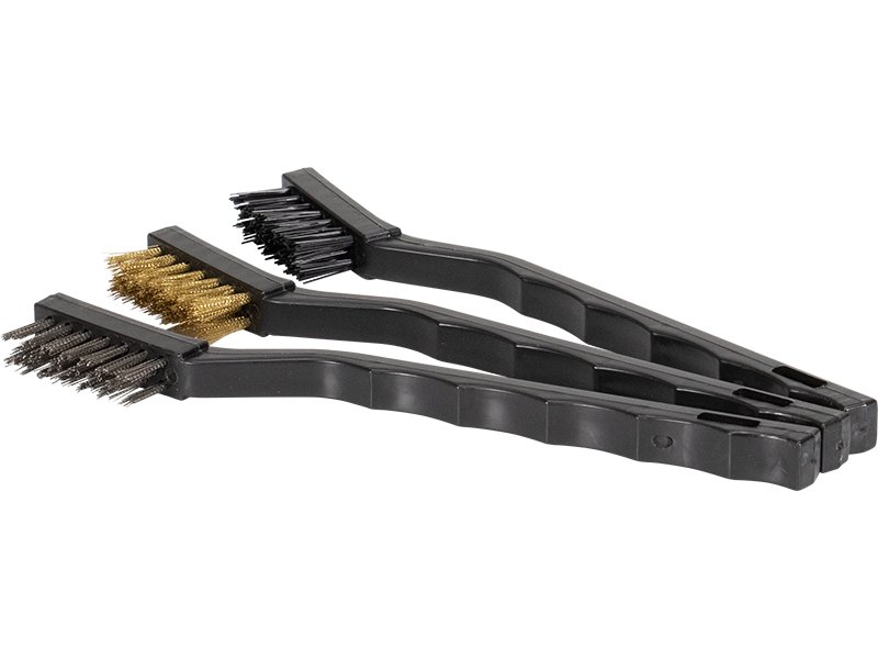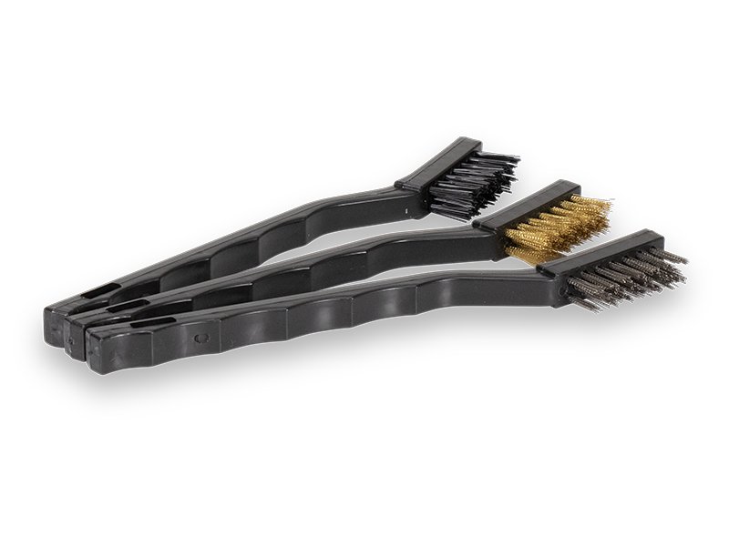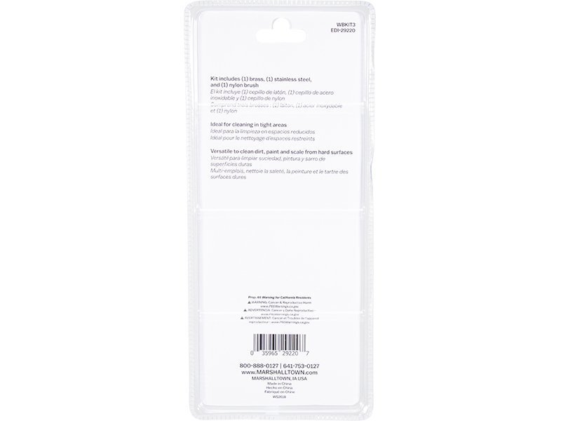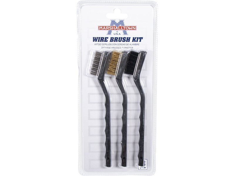 Marshalltown Drahtbürsten-Set mit drei Detailbürsten zum Entfernen von Farbe, Schmutz und Ablagerungen. Set besteht aus Nylonbürste, Messingborstenbürste und Edelstahlborstenbürste.