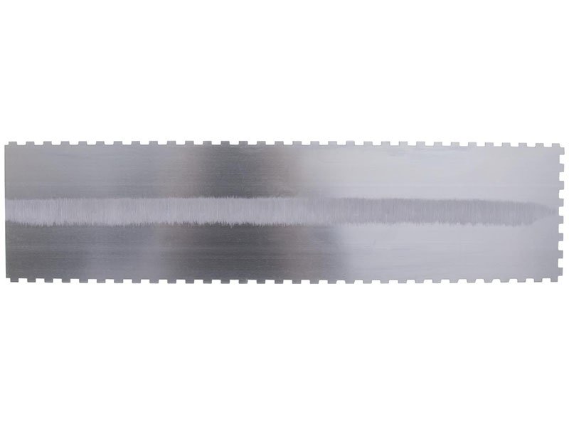 Die gezahnte Kelle von Marshalltown wird zum Verlegen von Fliesen, Teppichen und anderen Bodenbelägen, die mit Klebstoff oder Fliesenkleber bestrichen werden, verwendet. Durch die Zahnung und Größe der Kerben kann man die Menge des aufgetragenen Klebstoffs kontrollieren. Die Halterung aus Aluminiumguss ist fest vernietet an einem Blatt aus gehärtetem Stahl. Der widerstandsfähige Durasoft Griff bietet ein weiches Gefühl, mindert Ermüdungserscheinungen und bietet eine ausgezeichnete Haltbarkeit. Bei dieser Kelle sind drei Seiten der Kelle gezahnt und eine glatt und die Blattgrösse ist 279×114 mm.