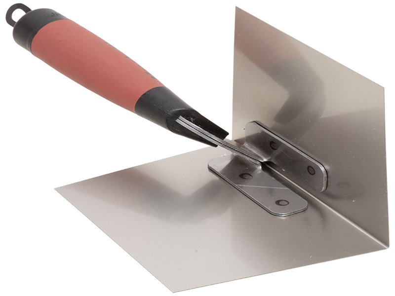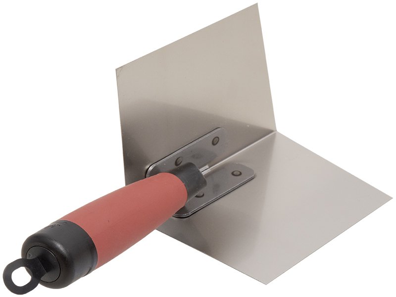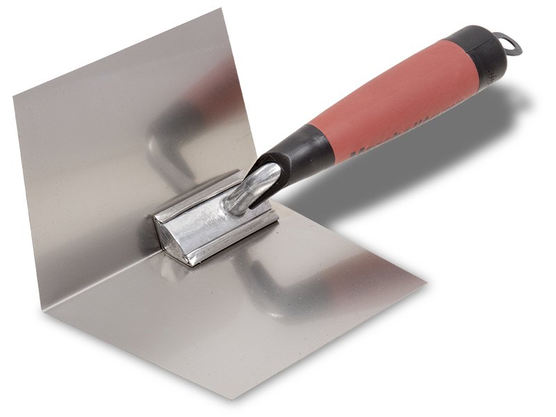 Die leichte Inneneck-Kelle von Marshalltown ist aus einem Stück flexiblem Edelstahl hergestellt. Die Kelle hat einen 90 Grad-Winkel zwischen den Klingen. Die Eckkelle ist zur Bildung von Innenecken gedacht und ist haltbar und einfach zu reinigen. Wird vor allem von Trockenbauern und Verputzern zum Einbetten des Netzbandes und/oder zum Glätten der letzten Materialschicht auf die abgeklebte Ecke verwendet. Der patentierte Durasoft-Griff mindert Ermüdungserscheinungen, die bei längerem Arbeiten auftreten.