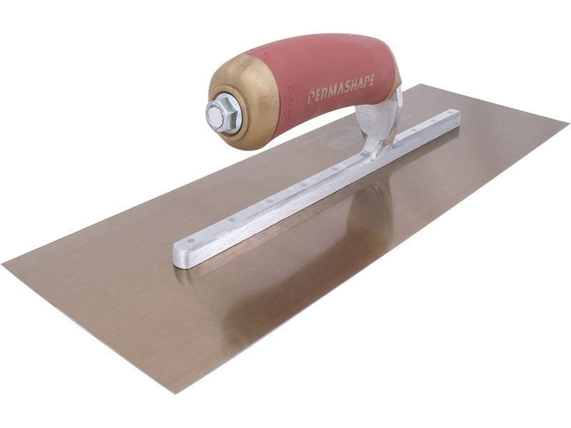 Die DuraFlex Glättkelle von Marshalltown garantiert, dass die Kelle ihre ursprüngliche flache Form behält, das flache, aber sehr flexible Blatt erleichtert die Anwendung mit einem gleichmäßigeren Finish. Das Goldstahlblatt ist fest mit der Aluminiumgusshalterung verbunden, die einen Vierkant Schaft hat, damit sich die Kelle nicht dreht. Besonders hervorzuheben ist, dass die erste Niete vorne deutlich dicker ist als die anderen, denn dort findet auch die meiste Belastung statt. Der gebogene patentierte Durasoft Griff ist sicher an die Halterung/Stütze angebracht. Er vermindert durch seine ergonomische Form Ermüdungserscheinungen und bietet einen verbesserten Komfort beim Arbeiten. Das ermöglicht dem Handwerker den ganzen Tag zu arbeiten, ohne das seine Hände schmerzen. Der Griff ist auswechselbar, was auch keine Selbstverständlichkeit ist bei Werkzeugen, man kann wählen zwischen Durasoftgriff, Holzgriff und Ledergriff.