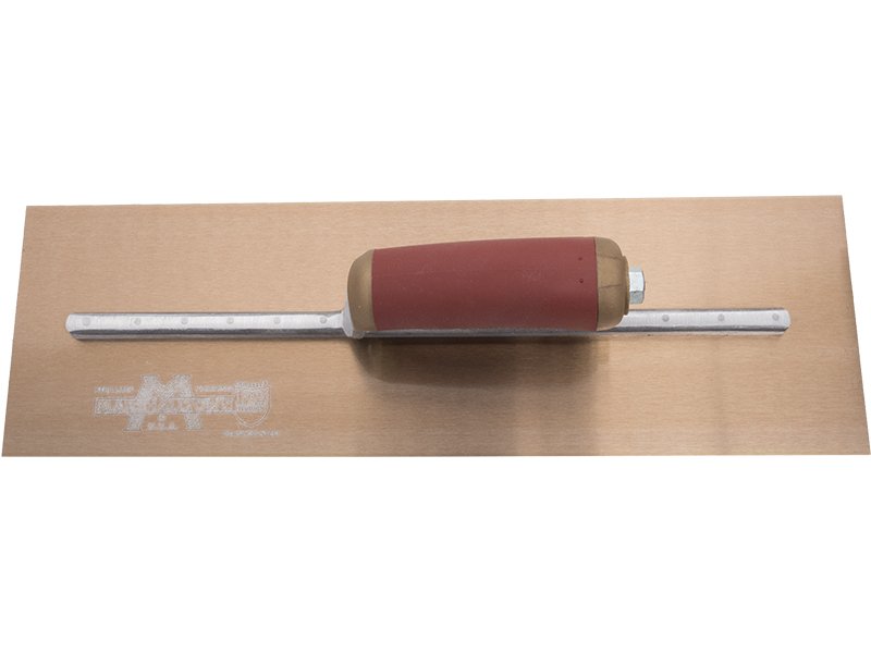 Die DuraFlex Glättkelle mit langer Halterung von Marshalltown: Flaches, flexibles Blatt für gleichmäßiges Finish. Festes Goldstahlblatt mit Vierkant Schaft. Ergonomischer Durasoft Griff reduziert Ermüdung. Austauschbarer Griff (Durasoft, Holz, Leder). Maße: 406×127 mm.