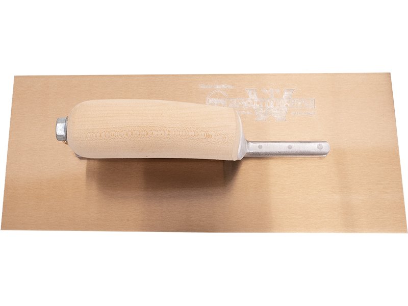 Die DuraFlex Glättkelle von Marshalltown: Flaches, flexibles Blatt für gleichmäßiges Finish. Festes Goldstahlblatt mit Vierkant Schaft. Holzgriff. Austauschbarer Griff (Durasoft, Holz, Leder). Maße: 305×127 mm.