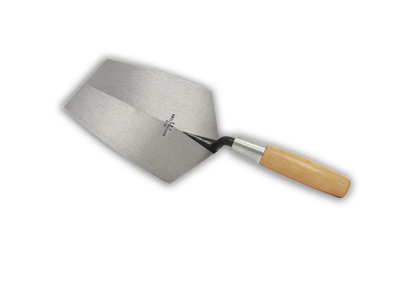 Marshalltown Eimerkelle: Breites Blatt zum Schöpfen von Mörtel, Verteilen auf Ziegel und einfaches Glätten. Aus einem Stück Carbonstahl für Haltbarkeit. Länge 191 mm, mit stabilem Holzgriff für Rechtshänder.