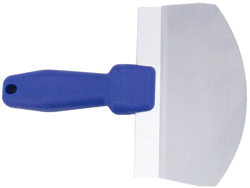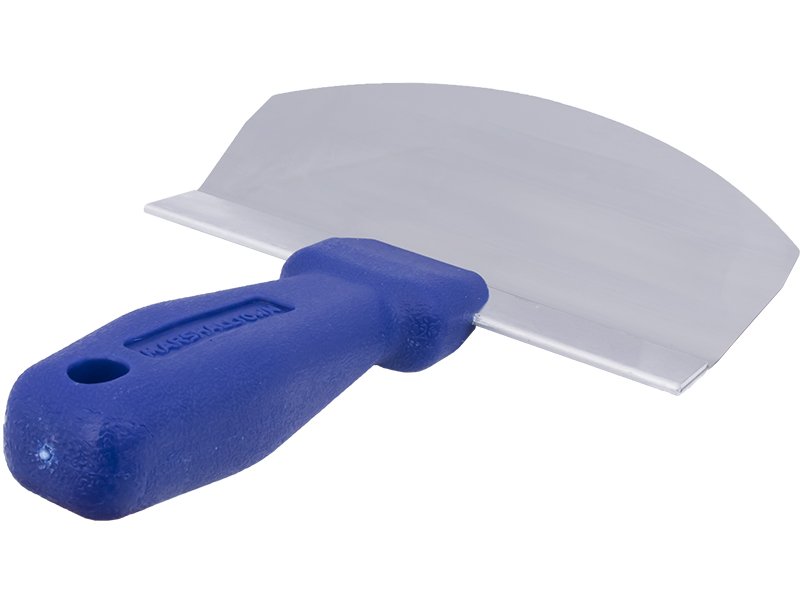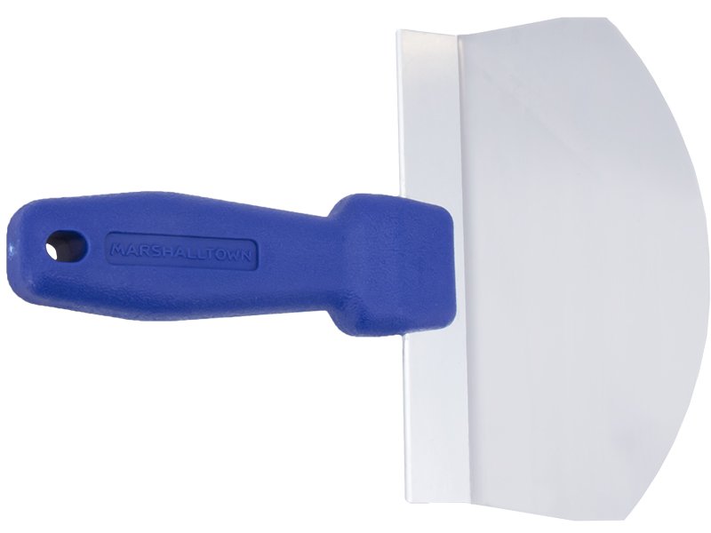 Der Eimerspachtel von Marshalltown ist hergestellt aus flexiblem Edelstahl. Der Kunststoffgriff ist fest an die Aluminiumträgerplatte befestigt. Der Eimerspachtel schaufelt Material, Mörtel, Stuck und andere Materialien aus Behältern. Durch die abgerundete Form bleibt fast kein Material im Behälter übrig.