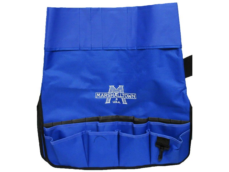 Eimerwerkzeugtasche von Marshalltown aus Nylon. Viel Stauraum: 33 Außentaschen, 1 verdeckte Tasche mit Klettverschluss, 14 Innentaschen, 1 Schlüsselanhänger mit Karabinerverschluss, 1 Bandschlaufe und 1 Hammerschlaufe.