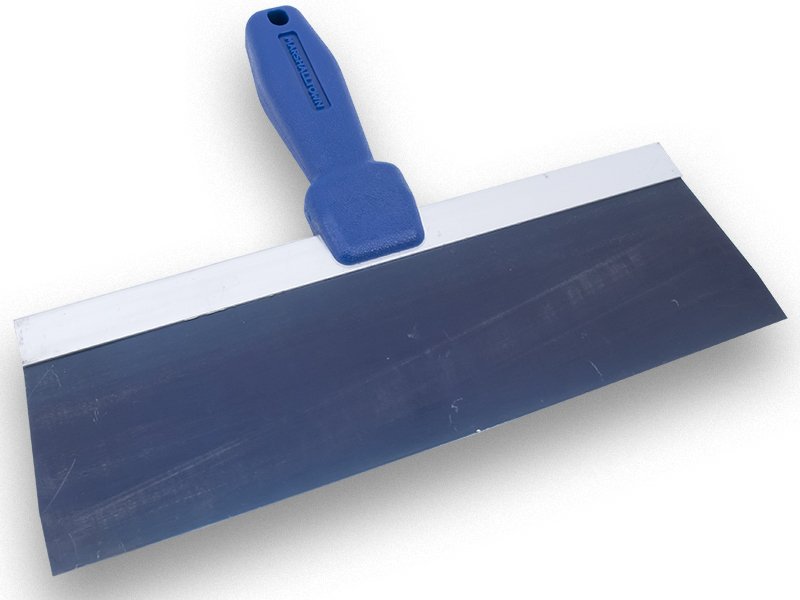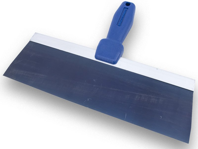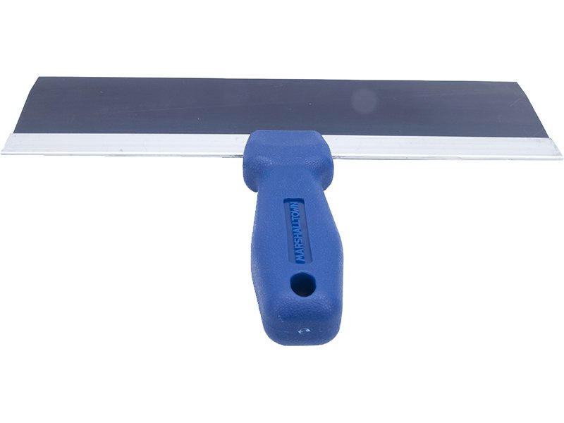 Der Marshalltown Flächenspachtel hat ein hochwertiges Blaustahlblatt, vernietet mit Aluminium-Trägerplatte für sicheren Griff. Perfekt für Wandkitt und Trockenbau. Maße: 305×76 mm.