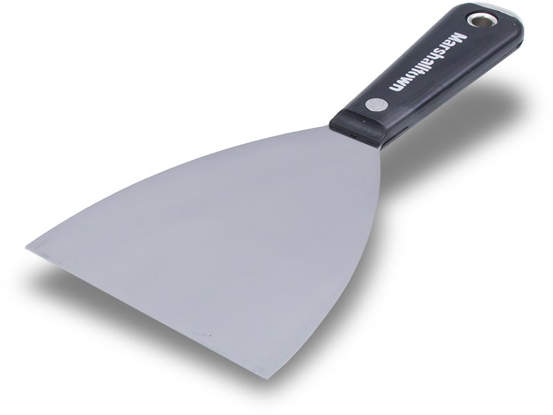 Das Marshalltown Fugenspachtel ist sehr gut zum Spachteln, Abschaben, Tapeten entfernen, sowie für Wand-, Kitt- und Lackierarbeiten. Der Spachtel ist flexibel und aus Stahl gefertigt, das Blatt geht durchgehend bis in den Griff. Sie haben ein Aufhängeloch zum leichteren Aufbewahren. Er hat einen Polyethylengriff, der widerstandsfähig für fast alle Chemikalien und Lösungsmittel ist, am Ende ist der breite Kopf, der als Hammer genutzt werden kann.