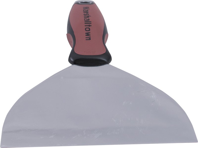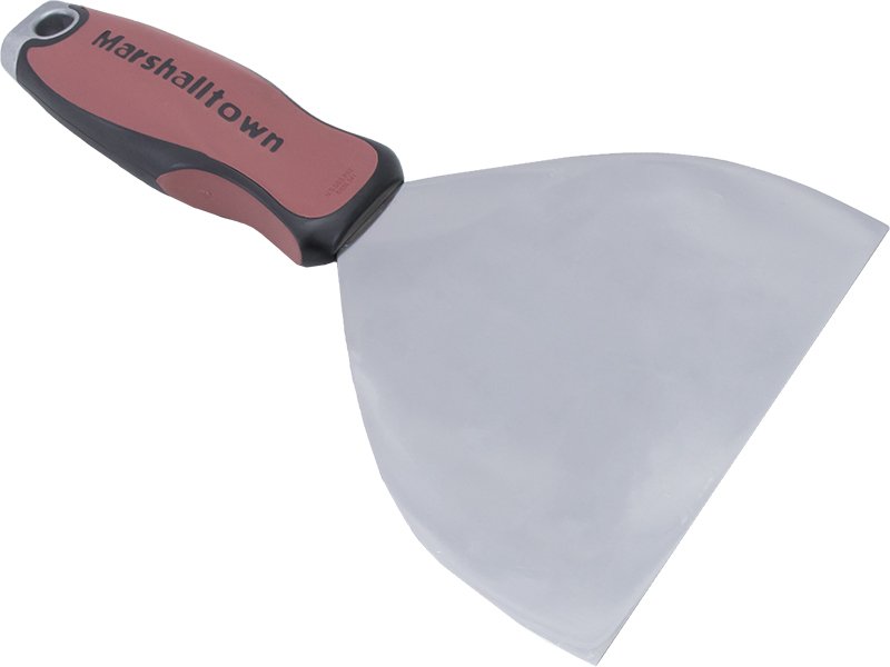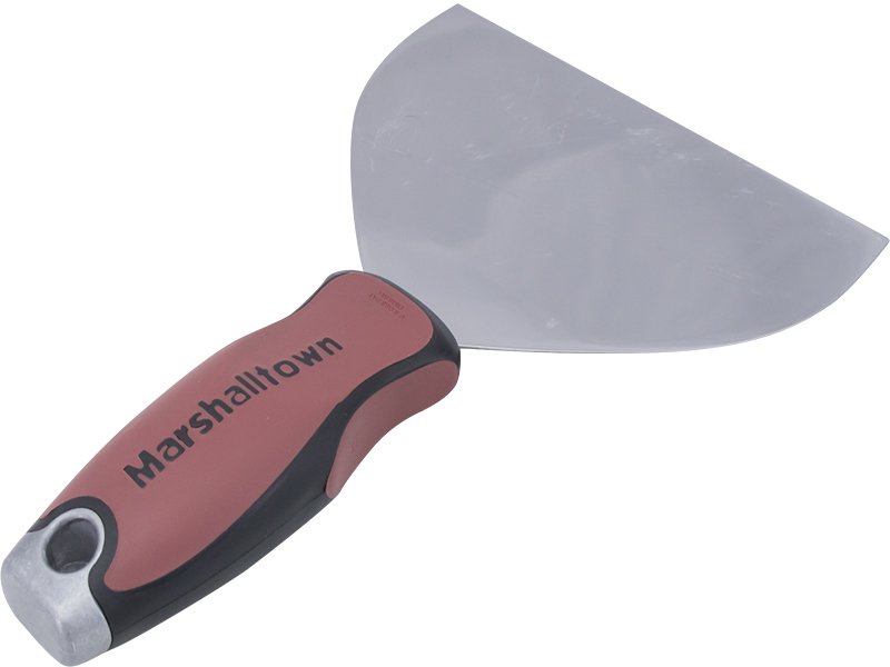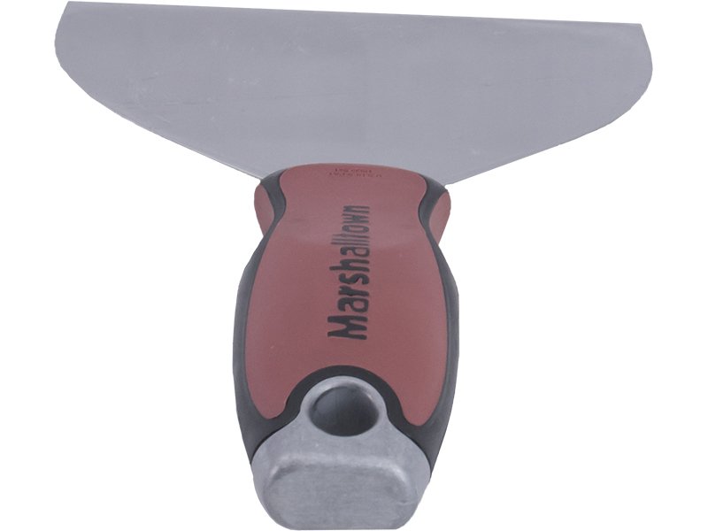 Marshalltown Fugenspachtel aus Edelstahl. Ideal zum Spachteln, Abschaben, Tapeten entfernen und für Wand-, Kitt- und Lackierarbeiten. Flexibel, langlebig und mit patentiertem Durasoft Griff. Inklusive Aufhängeloch und Hammerkopf. Maße: 229×152 mm.