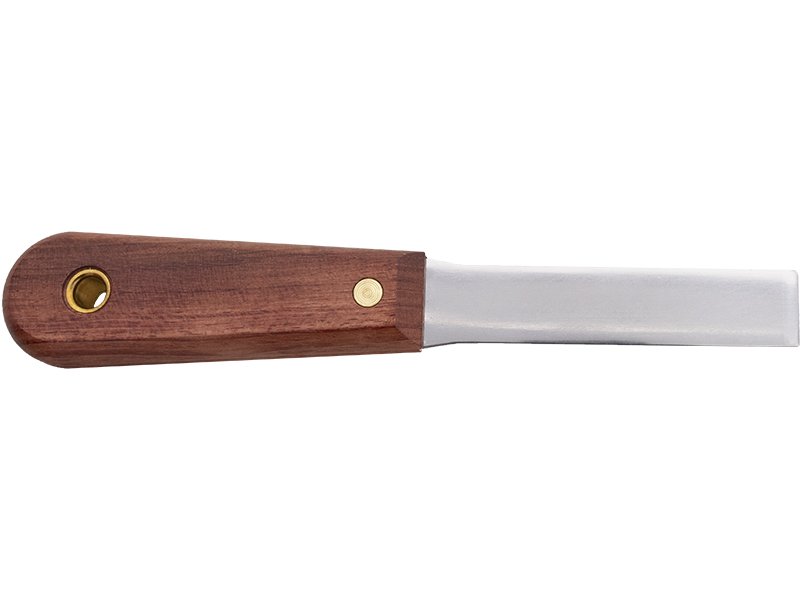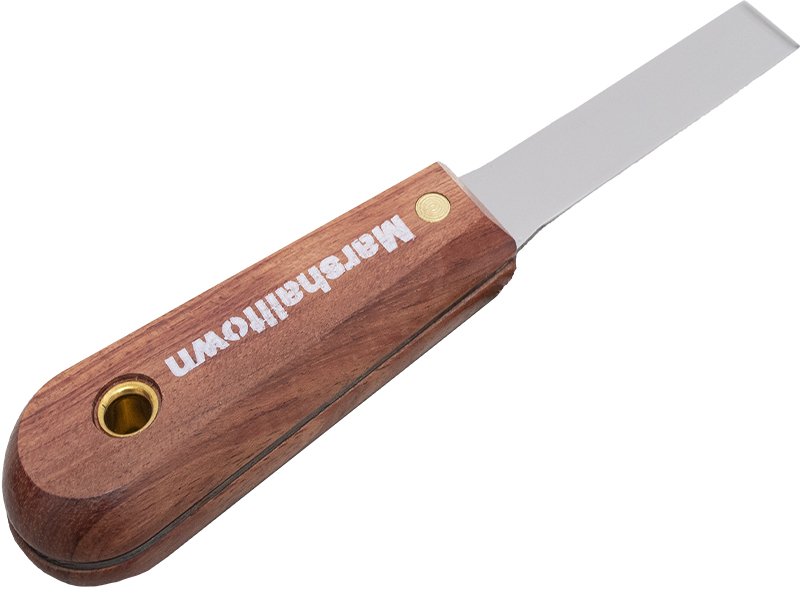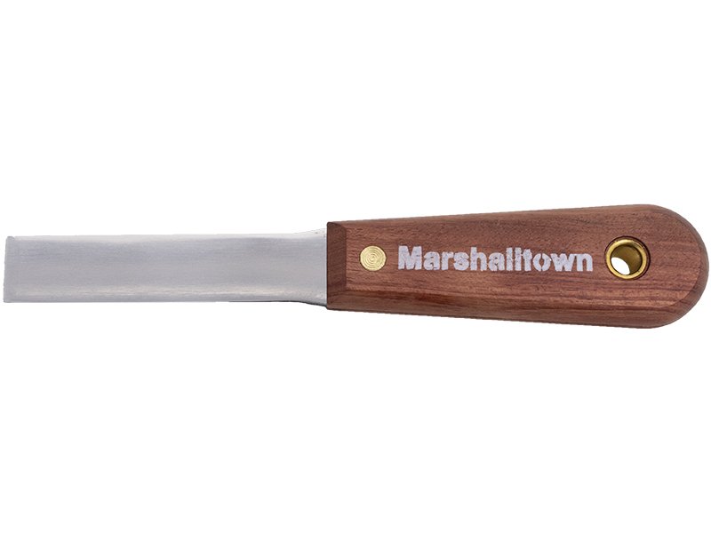 Vielseitiger Marshalltown Fugenspachtel aus flexiblem Stahl für Spachteln, Abschaben, Tapeten entfernen und mehr. Durchgehendes Blatt bis in den Griff. Aufhängeloch für einfache Aufbewahrung. Widerstandsfähiger Palisanderholzgriff. Maße: 184×19 mm.