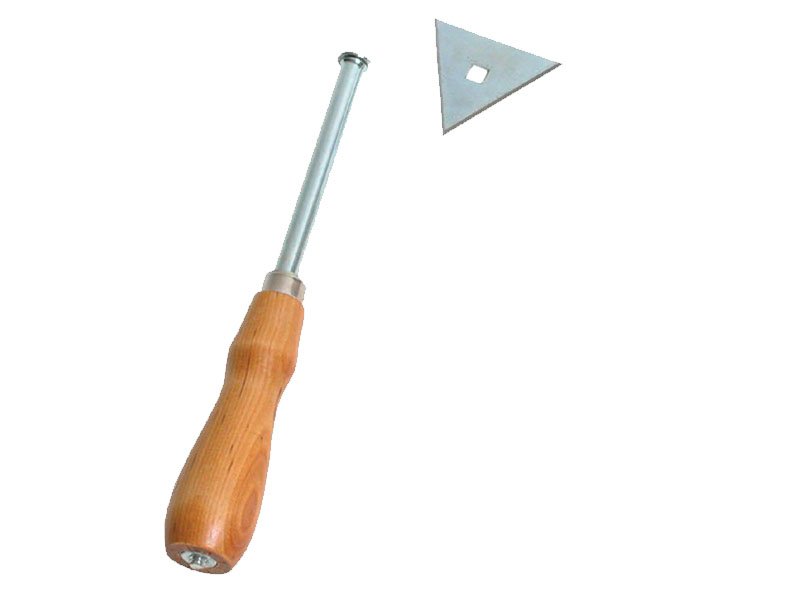 Hochwertige Schaberklinge „Triangle“ aus robustem Stahl, ideal für Konturen und geschnitzte Holzarbeiten. Passt in den stabilen Holzgriff von 19483, leicht auswechselbar. Maße: 64×229 mm.
