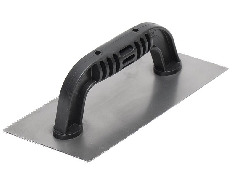 Marshalltown Gezahnte Kelle, Eckig 1,5×1,5×1,5/U-1,5×0,75×1,5 mm, 10 Grad gekürzt, Kunststoffgriff, Stahl, Maße: 229×102 mm