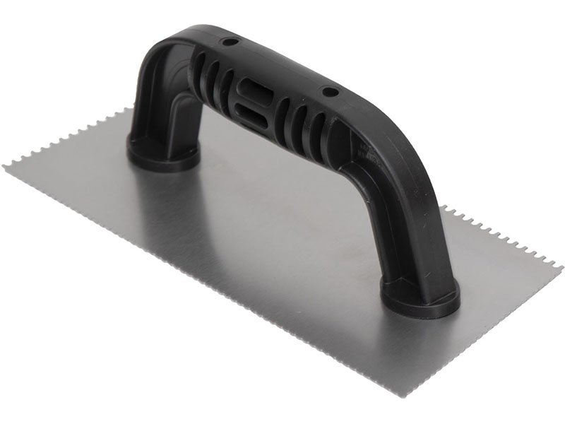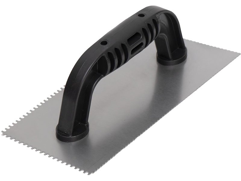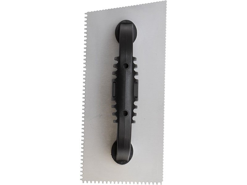 Marshalltown Gezahnte Kelle, U-1,5×1,5×1,5/U-1,5×0,75×0,08 mm, 10 Grad gekürzt, Kunststoffgriff, Stahl, Maße: 229×102 mm