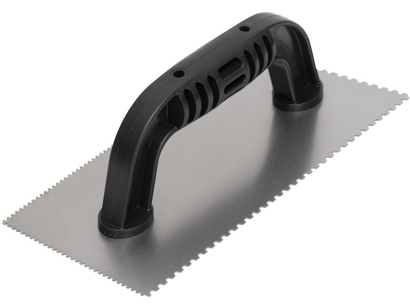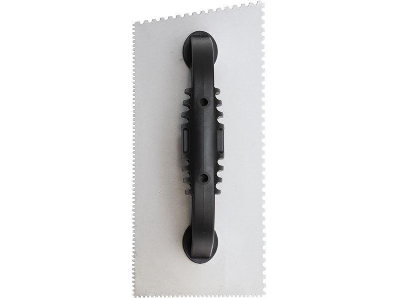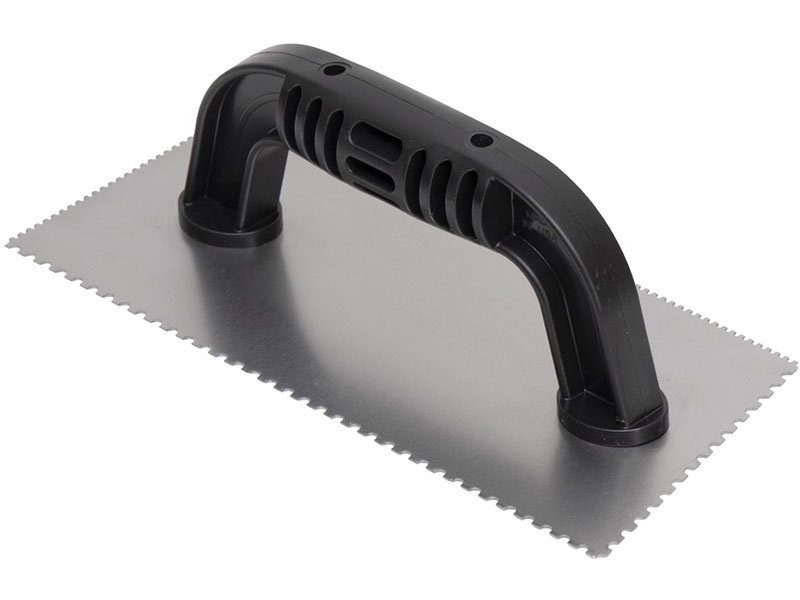 Marshalltown Gezahnte Kelle, U-3,18×2,38×3,18/Eckig 1,5×1,5×1,5 mm, 10 Grad gekürzt, Kunststoffgriff, Stahl, Maße: 229×102 mm