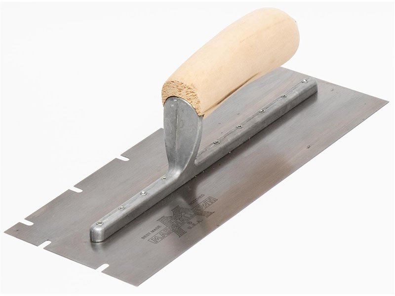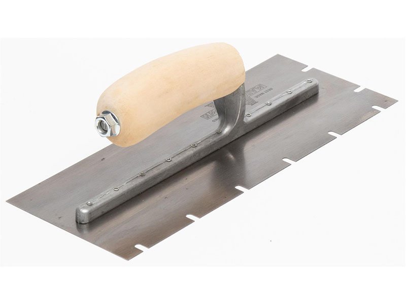 Marshalltown WDVS-Kellen: Leichte Aluminiumlegierung, Edelstahlblatt, mühelose Verteilung von Mörtel/Kleber, glatte WDVS-Verkleidung, pflegeleichter Holzgriff. U-Kerbung 4,5x10x44 mm.
