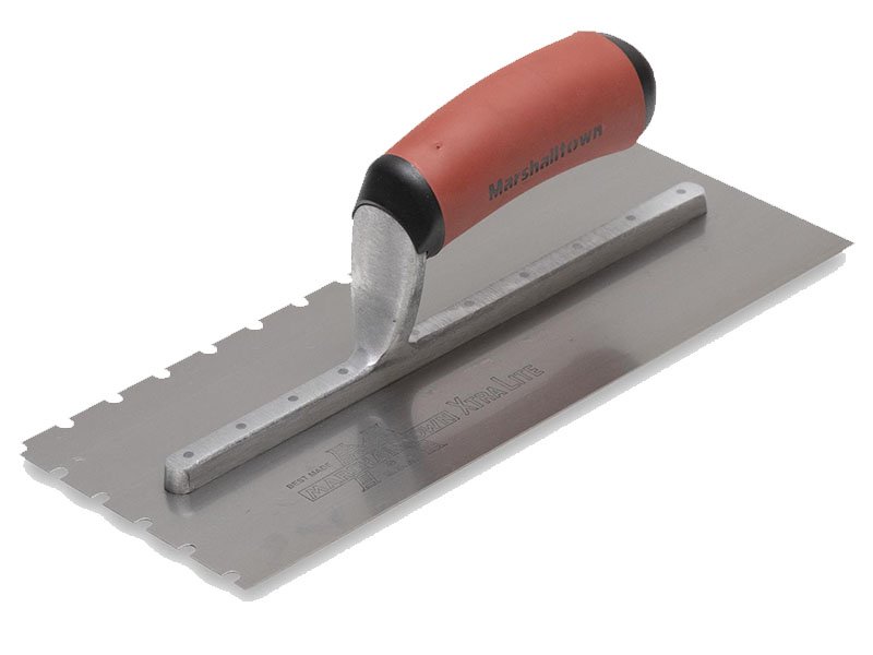 Die Marshalltown WDVS-Kellen sind für WDVS-Anwendungen unerlässlich. Die leichte Halterung aus einer Aluminiumlegierung ist mit einem Blatt aus Edelstahl vernietet. Die U-förmigen Kerben verteilen mühelos große Mengen an Mörtel oder Kleber und hinterlassen gleichmäßige Rillen für eine glatte WDVS-Verkleidung. Der patentierte Durasoft Griff liegt gut in der Hand und mindert Ermüdungserscheinungen beim Arbeiten.