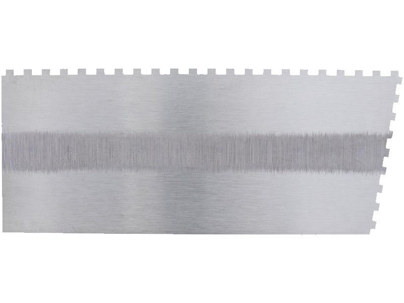 Gezahnte und einseitig gekürzte Kelle für präzises Verlegen von Fliesen und Bodenbelägen