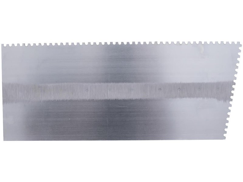 Gezahnte und einseitig gekürzte Kelle für präzises Verlegen von Fliesen und Bodenbelägen
