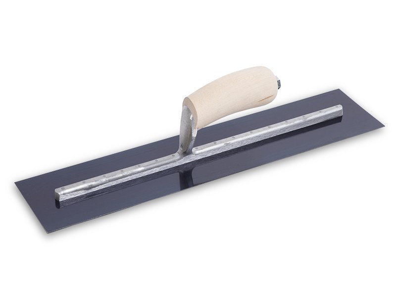 Robuste Glättkelle von Marshalltown aus Blaustahl mit fest verbundenem Blatt und Vierkant Schaft. Hervorragende Belastbarkeit und komfortabler, pflegeleichter Holzgriff. Austauschbarer Griff. Maße: 457×102 mm.
