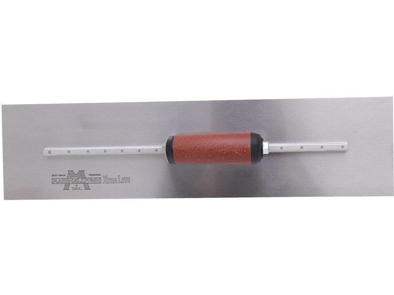 Die robuste Glättkelle von Marshalltown aus Carbonstahl mit Aluminiumgusshalterung und Vierkant Schaft. Robuster, gebogener Durakorkgriff für Komfort und Langlebigkeit. Einfacher Griffaustausch möglich. Maße: 508×127 mm.