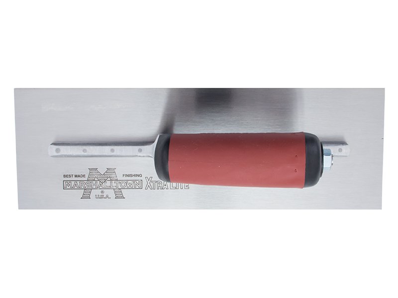 Die robuste Glättkelle von Marshalltown aus Carbonstahl mit Aluminiumgusshalterung und Vierkant Schaft. Patentierter, gebogener Durasoftgriff für Komfort und Langlebigkeit. Einfacher Griffaustausch möglich. Maße: 356×76 mm.