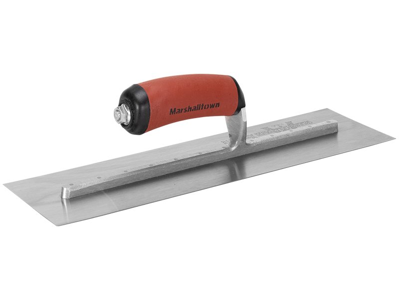 Die robuste Glättkelle von Marshalltown aus Carbonstahl mit Aluminiumgusshalterung und Vierkant Schaft. Patentierter, gebogener Durasoftgriff für Komfort und Langlebigkeit. Einfacher Griffaustausch möglich. Maße: 406×76 mm.