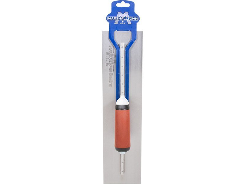 Die robuste Glättkelle von Marshalltown aus Carbonstahl mit Aluminiumgusshalterung und Vierkant Schaft. Patentierter, gebogener Durasoftgriff für Komfort und Langlebigkeit. Einfacher Griffaustausch möglich. Maße: 457×89 mm.