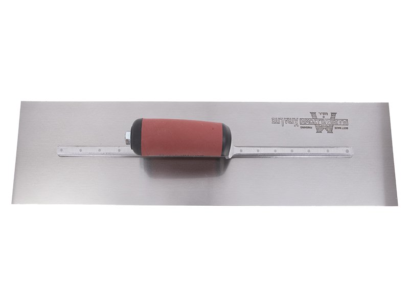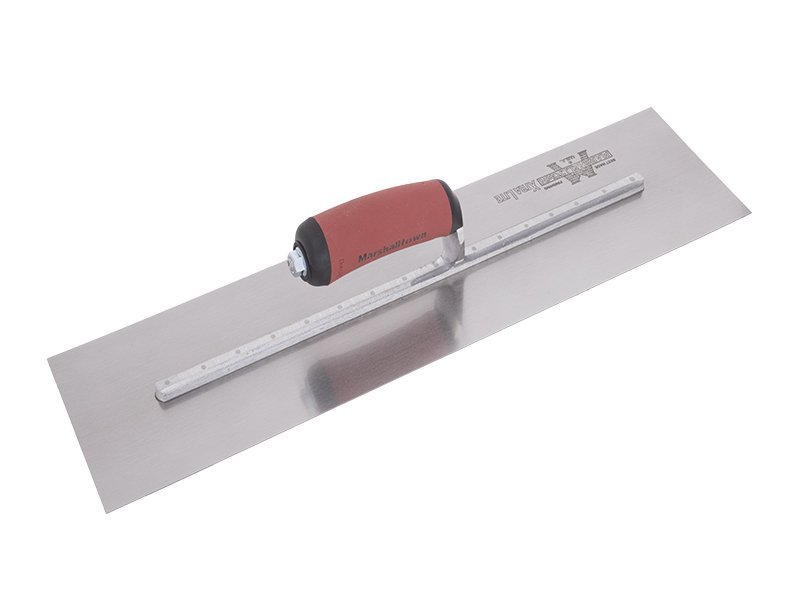 Die robuste Glättkelle von Marshalltown aus Carbonstahl mit Aluminiumgusshalterung und Vierkant Schaft. Patentierter, gebogener Durasoftgriff für Komfort und Langlebigkeit. Einfacher Griffaustausch möglich. Maße: 610×127 mm.