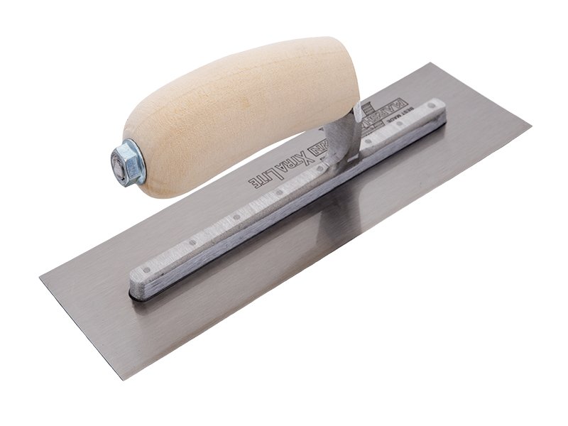 Die robuste Glättkelle von Marshalltown aus Carbonstahl mit Aluminiumgusshalterung und Vierkant Schaft. Robuster, gebogener Holzgriff für Langlebigkeit. Einfacher Griffaustausch möglich. Maße: 305×102 mm.