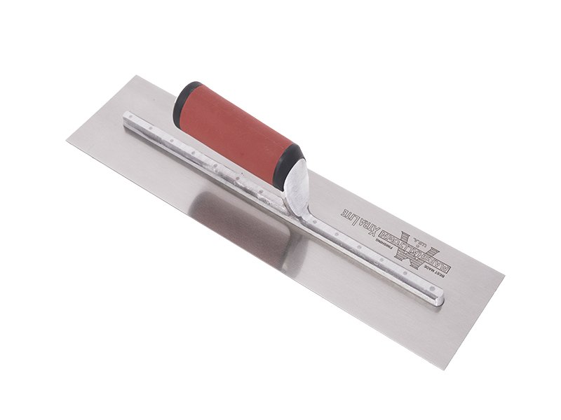 Die robuste Glättkelle von Marshalltown aus Carbonstahl mit Aluminiumgusshalterung und Vierkant Schaft. Patentierter, gerader Durasoftgriff für Komfort und Langlebigkeit. Einfacher Griffaustausch möglich. Maße: 406×102 mm.
