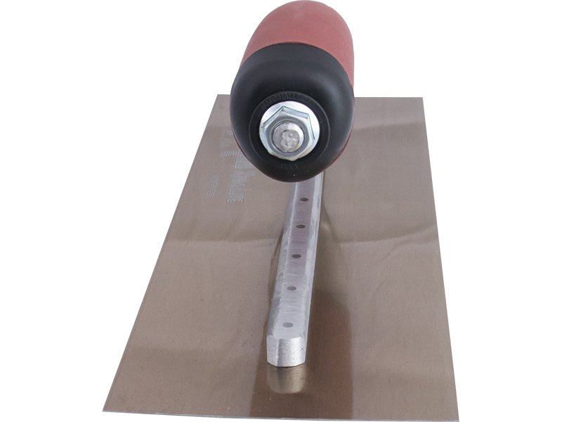 Die Glättkelle von Marshalltown ist hergestellt aus Goldstahl, sie ist sehr robust, somit hat man lange Freude an ihr. Das Goldstahlblatt ist fest mit der Aluminiumgusshalterung verbunden, die einen Vierkant Schaft hat, damit sich die Kelle nicht dreht. Besonders hervorzuheben ist, dass die erste Niete vorne deutlich dicker ist als die anderen, denn dort findet auch die meiste Belastung statt. Diese Kelle ist mit einem patentierten Durasoftgriff ausgestattet, der angenehm in der Hand liegt, Ermüdung reduziert und sehr robust ist. Der Griff kann problemlos gegen einen Holzgriff, Durakorkgriff oder einen neuen Durasoftgriff ausgetauscht werden.