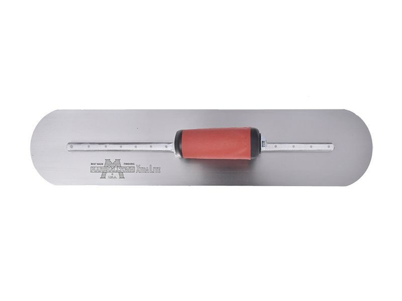 Die vollabgerundete Glättkelle von Marshalltown ist hergestellt aus robustem Carbonstahl, somit hat man lange Freude an ihr. Sie wird zum Nivellieren, Verteilen und Veredeln von Wände und Böden verwendet. Das Carbonstahlblatt ist fest mit der Aluminiumgusshalterung verbunden, die einen Vierkant Schaft hat, damit sich die Kelle nicht dreht. Diese Glättkelle von Marshalltown hat den Vorteil, dass man keine Furchen oder Rillen auf der zu bearbeitenden Oberfläche hinterlässt, da die Enden abgerundet sind. Besonders hervorzuheben ist, dass die erste Niete am Blatt vorne deutlich dicker ist als die anderen, denn dort findet auch die meiste Belastung statt. Der patentierte Durasoft Griff ist sicher an die Halterung/Stütze angebracht, er ist sehr pflegeleicht und liegt gut in der Hand, das ermöglicht dem Handwerker den ganzen Tag zu arbeiten, ohne das seine Hände schmerzen. Er ist ganz einfach auswechselbar durch einen Holzgriff, DuraKork Griff oder einen anderen Durasoft Griff.