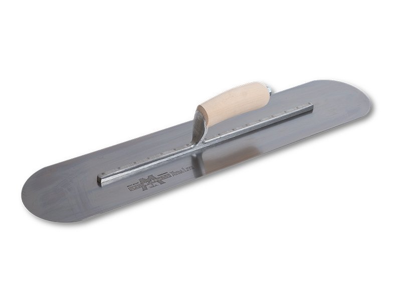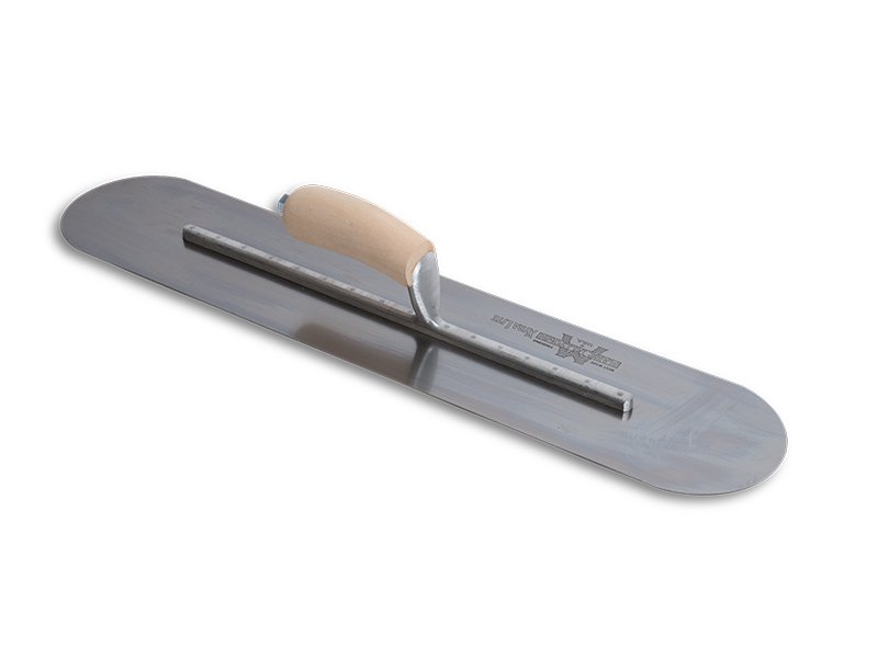 Hochwertige Glättkelle aus Carbonstahl mit fest verbundenem Blatt und abgerundeten Enden. Perfekt zum Nivellieren und Veredeln von Oberflächen. Ergonomischer Holzgriff für komfortables Arbeiten. Maße: 559×102 mm.
