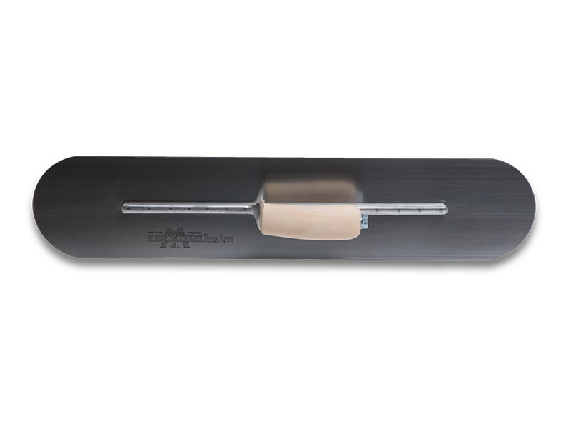 Hochwertige Glättkelle aus Carbonstahl mit fest verbundenem Blatt und abgerundeten Enden. Perfekt zum Nivellieren und Veredeln von Oberflächen. Ergonomischer Holzgriff für komfortables Arbeiten. Maße: 610×127 mm.