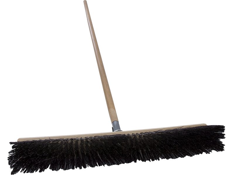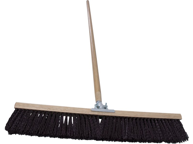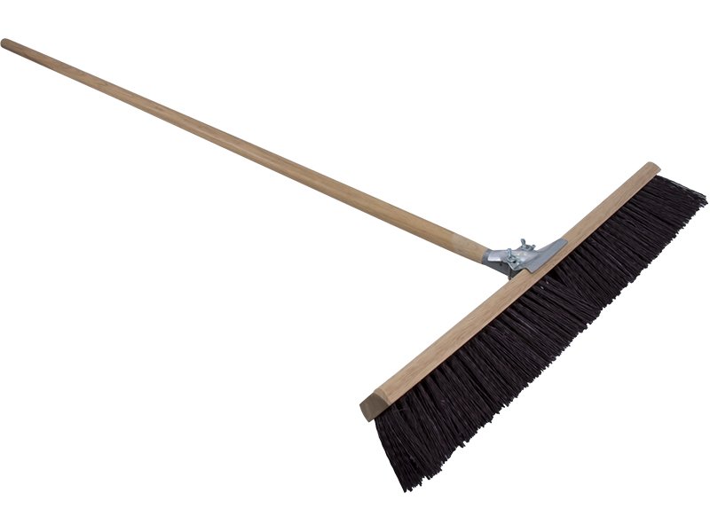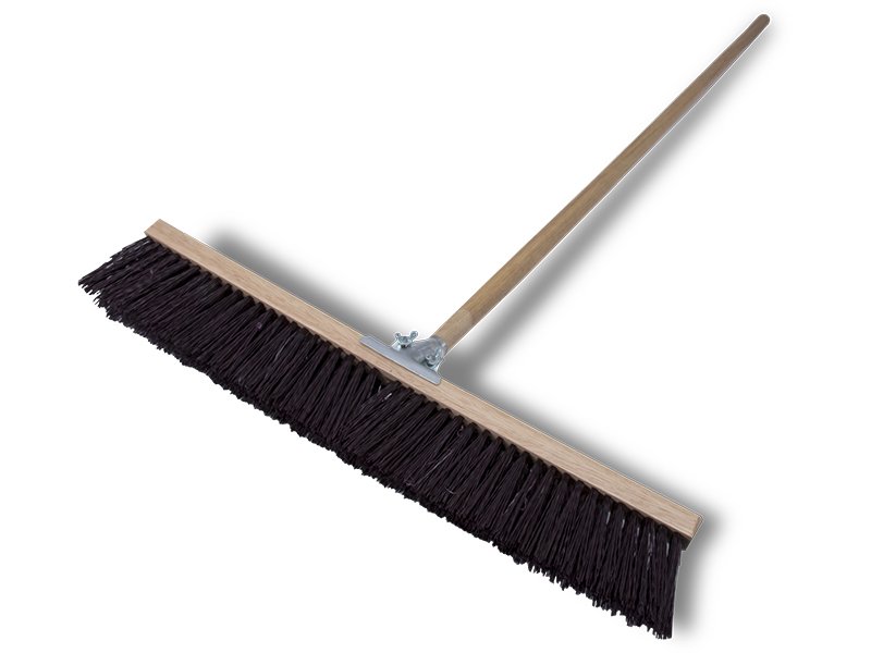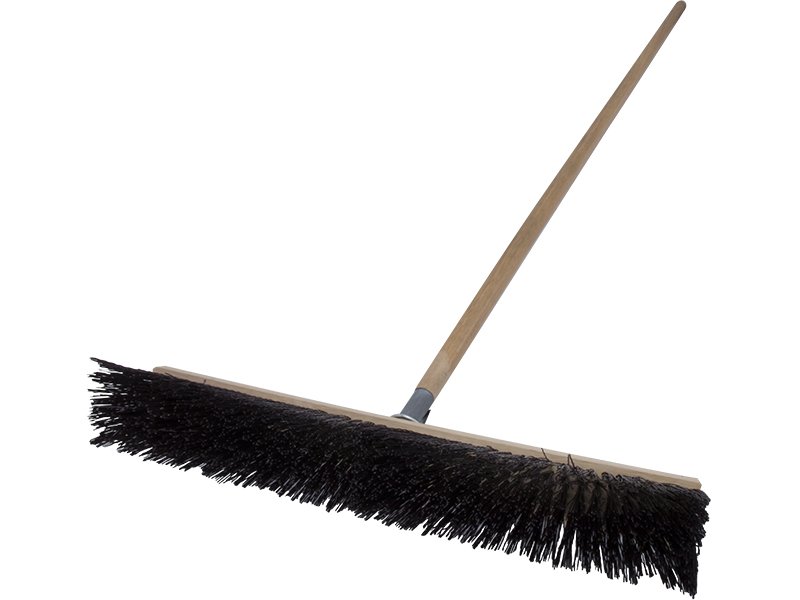 Robuster Asphaltbesen von Marshalltown für Nass- oder Trockenkehrung von Beton- oder Asphaltböden. Breite: 610 mm. Borsten in Holzblock eingefasst. Inklusive 1524 mm Holzstiel.