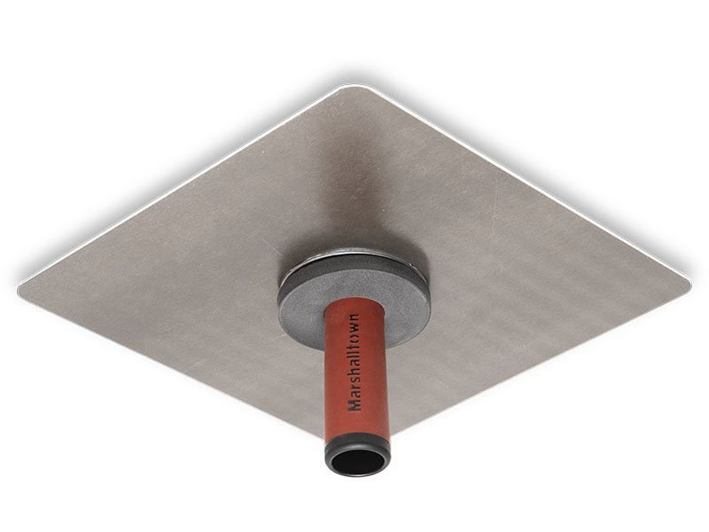 Marshalltown große Kelle: Quadratisch, aus dickwandigem Aluminium. Ideal zum Bereithalten von Gips oder Mörtel. Glättet ohne Furchen. Ergonomischer Griff für Komfort und Halt auf Gerüstpfosten. Maße: 305×305 mm.